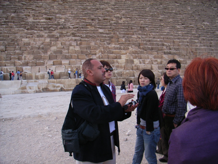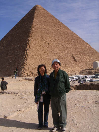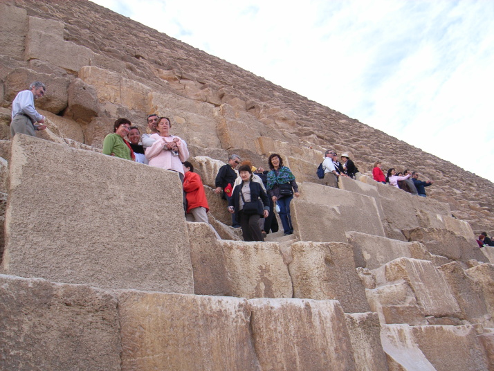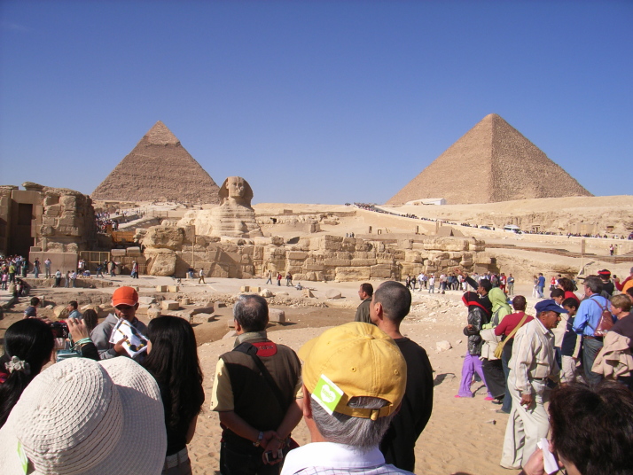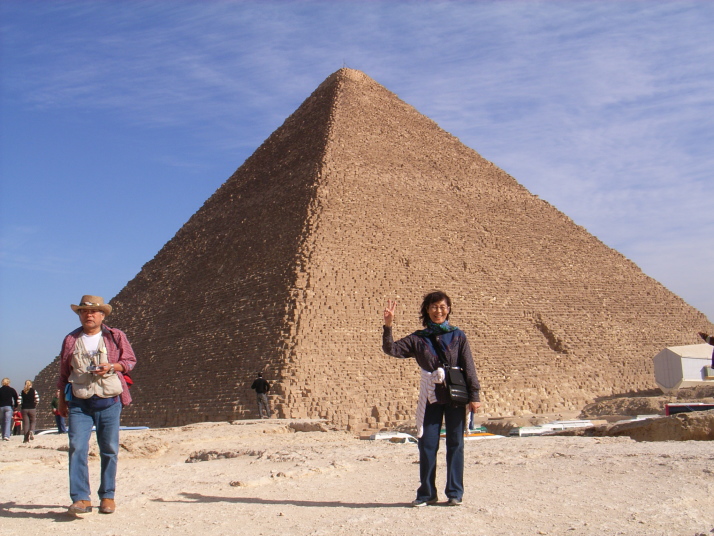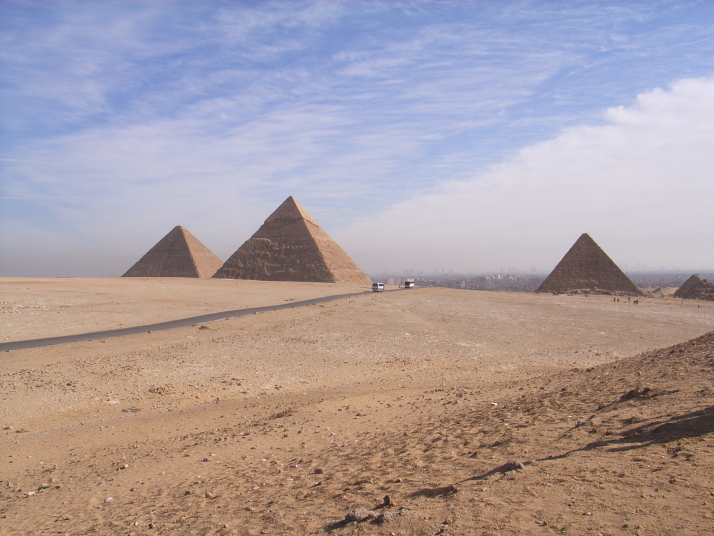 ギザの3大ピラミッド、クフ王のピラミッド、 カフラー王のピラミッド、メンカウラー王 のピラミッドはギザの町のすぐそばにあります。 カフラー王のピラミッドは内部まで入れます。 スフインクス、メンフィス博物館、サッカラの 階段ピラミッド、ダハシュールの屈折ピラミッド 赤のピラミッド、絨毯のお店を回りました