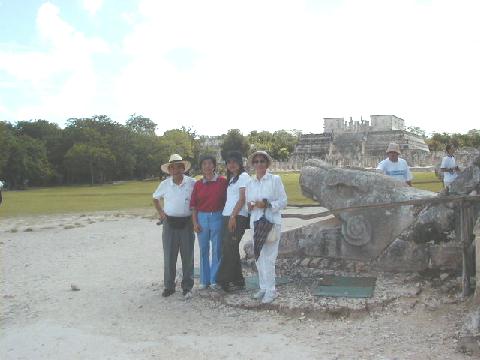 ガイドさんと共に。後方に戦士の神殿が見える
