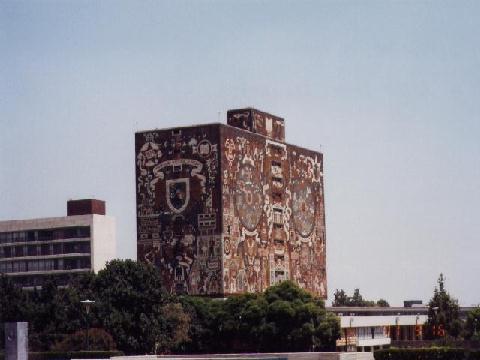 メキシコ国立自治大学の図書館。キャンパスは大学都市と呼ばれている