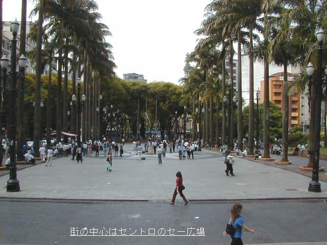街の中心はセントロのセー広場。この広場にはカテドラルが建ち、また、広場の真中に高さ1m程の六角柱があり、これを「マルコ・ゼロ」と呼んで東京の日本橋と同様にサンパウロの方位起点になっている。 ここには原宿と同様、若者達が集まって賑やかに「ライブ」を繰り広げていた。 |