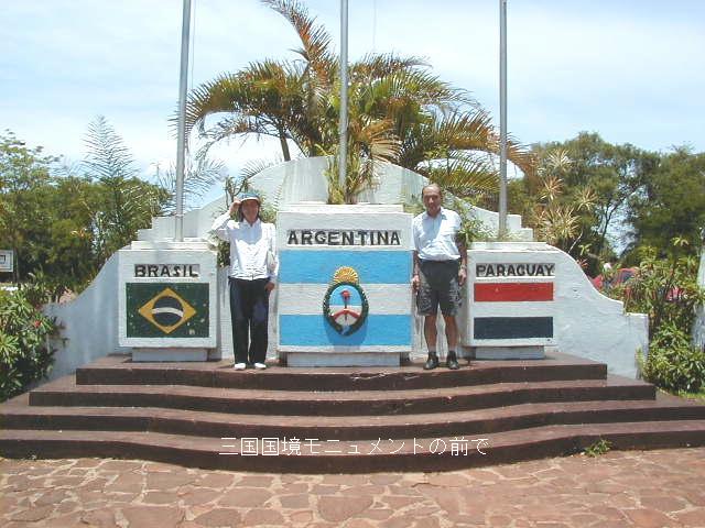 ここイグアスは、アルゼンチンとパラグアイの国境に接しており、イグアスの滝はアルゼンチン側からも観光できる。ここ三国国境地点はブラジル・アルゼンチンの国境を流れるイグアス川と、ブラジル・パラグアイの国境を流れるパラナ川の合流点になっている。 |