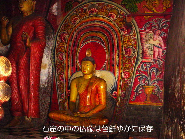 ダンブッラはシギリヤから18kmのところに位置し、王は2世紀の当時首都から身を潜め、その後王位を奪還した感謝の意を込めてここに寺院を建てました。このお寺は現在でもよく維持されています。 タンブッラの石窟寺院は紀元前1世紀に建てられたスリランカ最大の石窟寺院です。自然の洞窟を利用して僧侶が住みついたといわれています。 寺院の石窟の中には、見事なほどの色鮮やかな仏像や壁画が残っています。